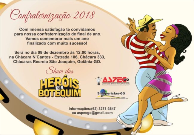No dia 08-12-18 (sábado) às 12:00 horas acontecerá nossa tradicional Festa de Fim de Ano. Em comemoração também ao DIA DO PERITO CRIMINAL. Desta vez a festa será durante o dia e em parceria com o Sindperícias. Repleta de comidas de boteco, bebidas e o show ao vivo da banda Heróis de Botequim. Serão momentos…