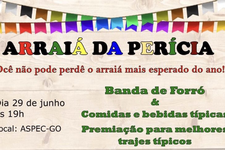 No dia 29/06/2018 vai acontecer o tradicional “ARRAIÁ DA PERÍCIA”. No galpão da ASPEC-GO. Vai ter banda de forró, comidas e bebidas típicas e premiação…