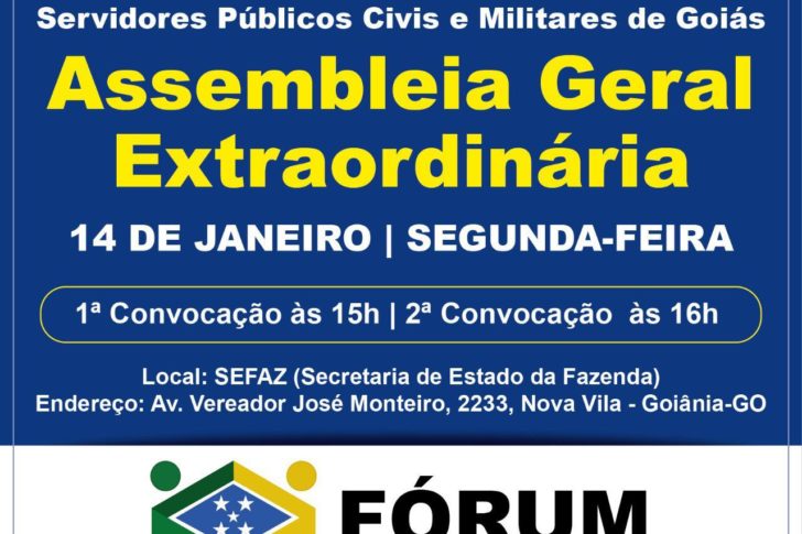 Na tarde desta segunda-feira (21/01), na porta do Palácio Pedro Ludovico, realizou-se Assembleia Geral Unificada pelo Fórum em Defesa dos Servidores e Serviços Públicos de…