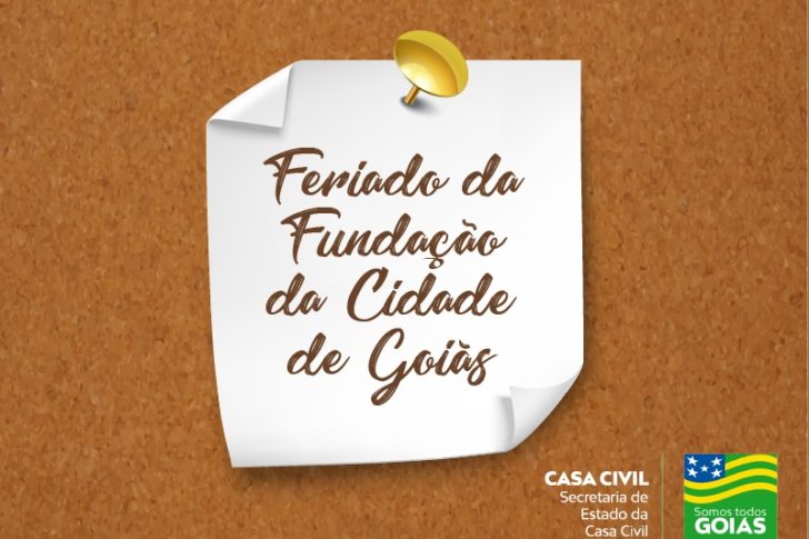 O Governo de Goiás, por meio da Secretaria de Estado da Casa Civil, informa que o feriado consagrado à fundação da cidade de Goiás será…