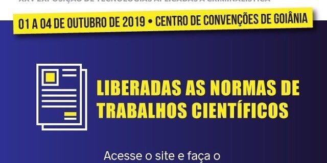 As normas para submissão de trabalhos científicos já estão liberadas no site do evento. Tem premiação em dinheiro (R$1000,00 por área), possibilidade de publicação em revista indexada (Revista Brasileira de Criminalística) e de apresentação oral (sua chance de ser palestrante no evento).