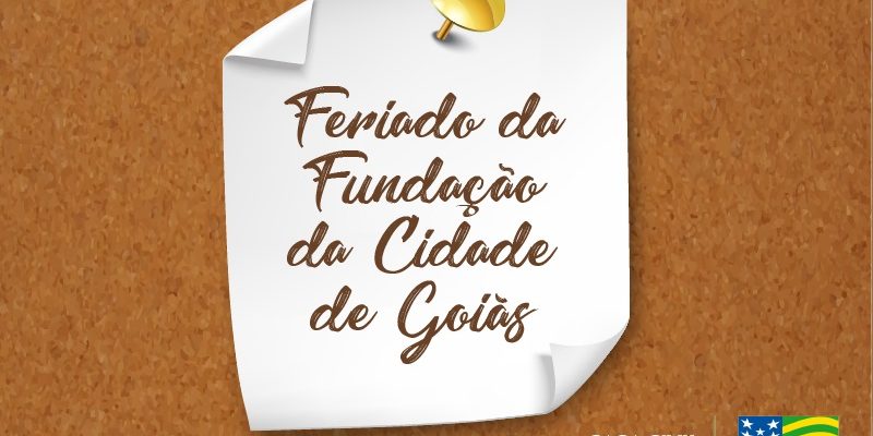 O Governo de Goiás, por meio da Secretaria de Estado da Casa Civil, informa que o feriado consagrado à fundação da cidade de Goiás será comemorado no dia 26 de julho (sexta-feira), conforme previsto na Lei nº 10.460, de 22 de fevereiro de 1988, em seu artigo 346, inciso II, alínea a, em seu parágrafo único.